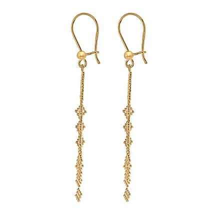 9K Yellow Gold 10mm x 60.5mm Diamond Cut Geometric Drop Earrings