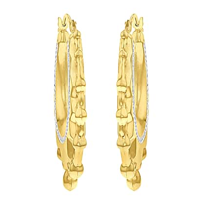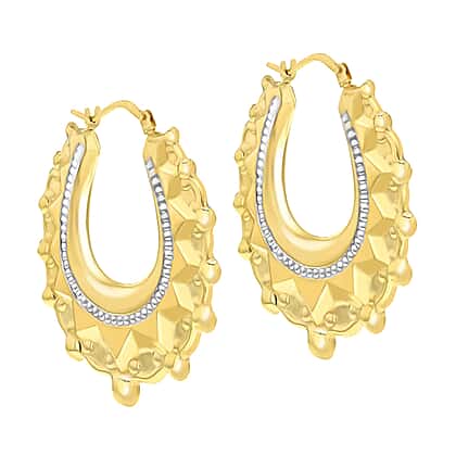 9K Two Tone Gold 31mm x 37mm Hollow Patterned Earrings