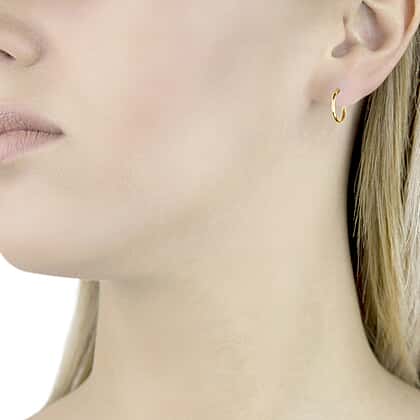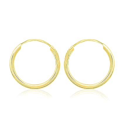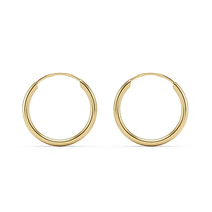 9K Yellow Gold 1.5MM Tube 15MM Sleeper Hoop Earrings 0.38 grams
