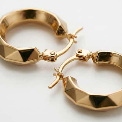 • DESIGN: These 9K yellow gold earrings are a sort of hoop earring that has an uneven thickness and/or an extended shape