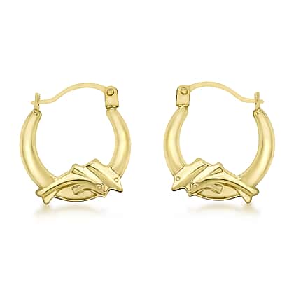 9K Yellow Gold 14mm X 16mm Dolphin Creole Earrings