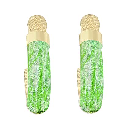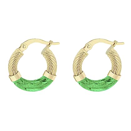 9K Yellow Gold 16.5mm Green Enamel Twist Tube Hoop Creole Earrings