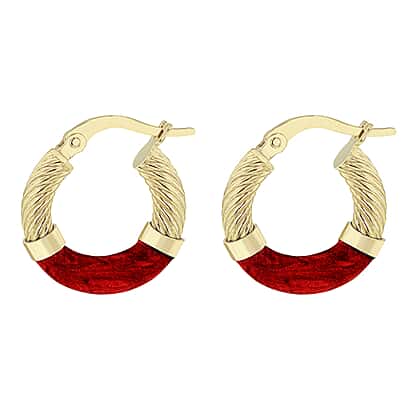 9K Yellow Gold 16.5mm Red Enamel Twist Tube Hoop Earrings