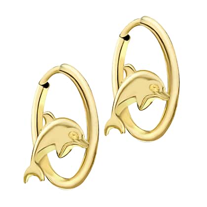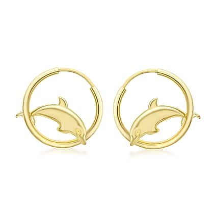9K Yellow Gold 17mm Hoop With Dolphin Earrings