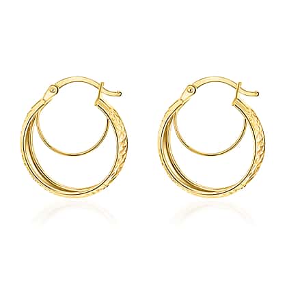9K Yellow Gold 19MM Diamond Cut Double Hoop Creole Earrings 1.8 grams
