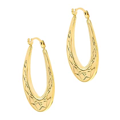 9K Yellow Gold 19mm X 26mm Patterned Oval Creole Earrings