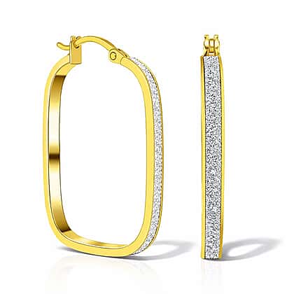 9K Yellow Gold 2.5MM X 30.5MM Stardust Rounded Rectangle Earrings 2.1 grams