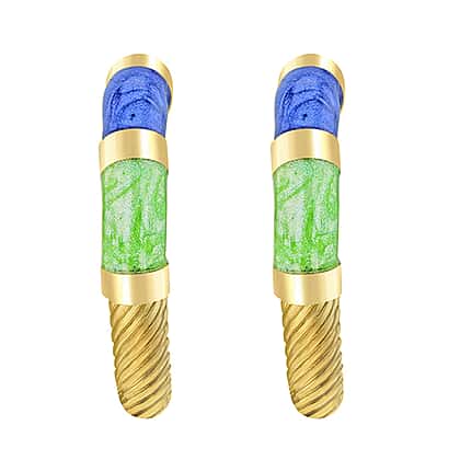 9K Yellow Gold 21.5mm Blue And Green Enamel Twist Tube Hoop Earrings