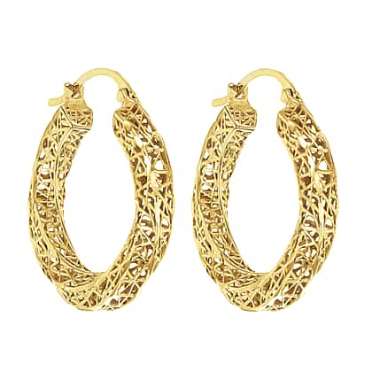 9K Yellow Gold 22mm Diamond Cut Mesh Creole Earrings