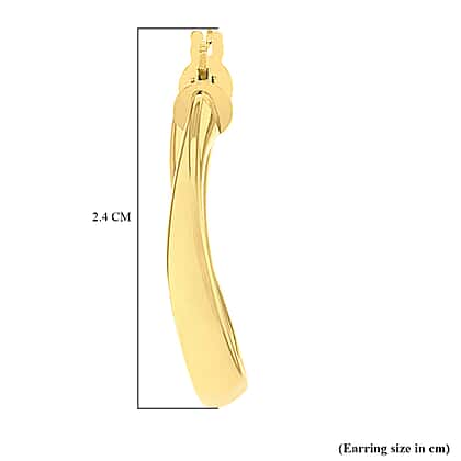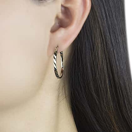 9K Yellow Gold 28MM Rectangular Tube Ribbed Creole Hoop Earrings 1.3 grams