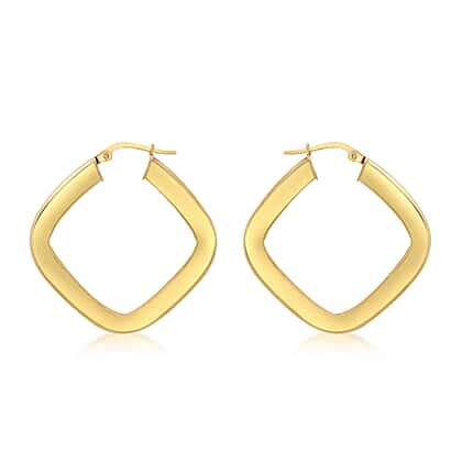 9K Yellow Gold 29mm X 29mm Hammered Pattern Square Creole Earrings