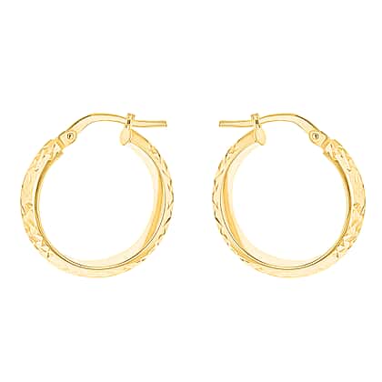 9K Yellow Gold 3.5MM Tube 21MM Diamond Cut Round Creole Hoop Earrings 1.5 grams