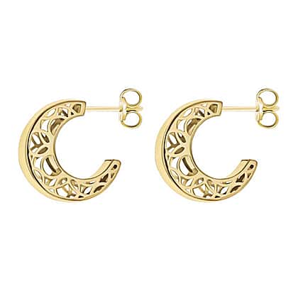 9K Yellow Gold 3mm X 10mm Filigree Side Half Hoop Stud Earrings