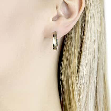 9K Yellow Gold 4MM Tube 21MM Patterned Hoop Creole Earrings 1.4 grams