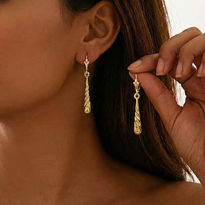 9K Yellow Gold 4mm X 30mm Drop Earrings