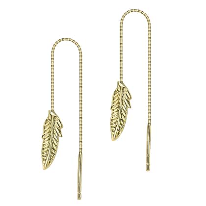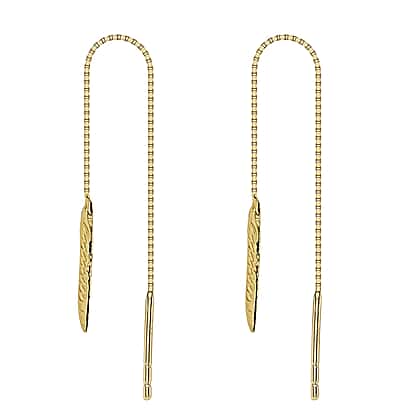 9K Yellow Gold 4mm X 60mm Leaf Pull Through Chain Earrings