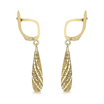 The trendy teardrop pattern on this magnificent pair of earrings makes them exceedingly lovely and unique. It's composed of 9k yellow gold, which has a beautiful lustre and a durable exterior for long-term use. It also contains a lever clasp for simple closure and wearing, seeking to make your duty even more manageable, and weighs 1.7 grams, making it exceptionally light to wear all day.
