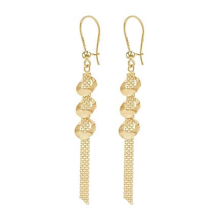 These gorgeous earrings have three rings and a Bismark Chain that is made up of two or multiple link chains, giving them a unique appeal. They provide you with a trendy style and help you nail your fashion game when worn and coupled with clothing. It's constructed of 9k yellow gold, which has a wonderful lustre and a robust shell that will last a long time. It has a simple hook clasp and only weighs 2.4 grams, making it surprisingly light to wear all day.
