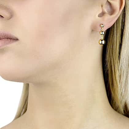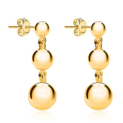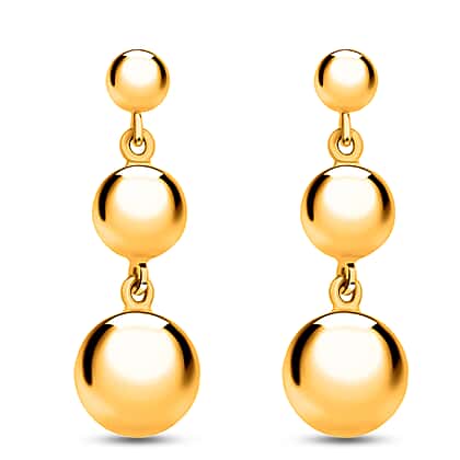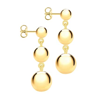 9K Yellow Gold 9MM X 26MM Triple Graduated Ball Drop Earrings 1.42 grams