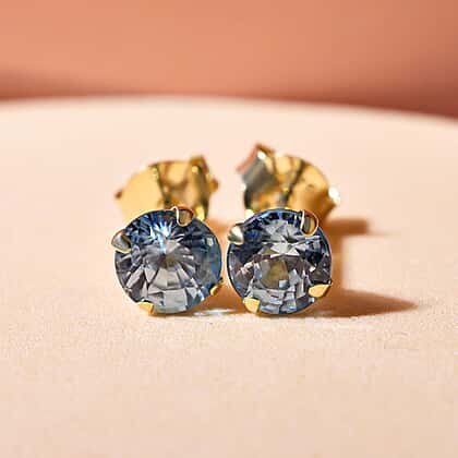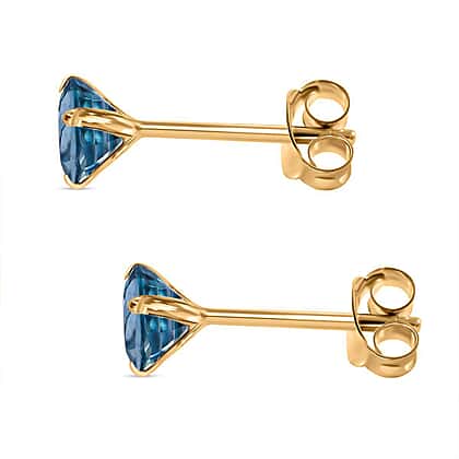 9K Yellow Gold Blue Zircon Earrings 1.56 Ct