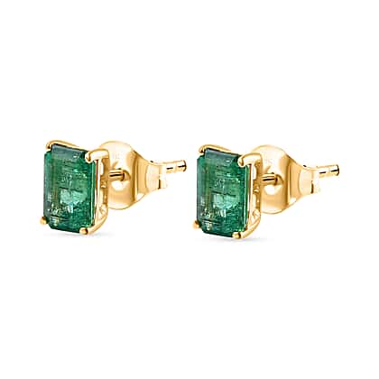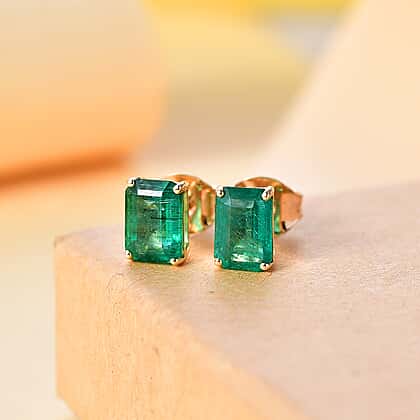 9K Yellow Gold AAA Emerald Earring With Push Back 1.98 ct,