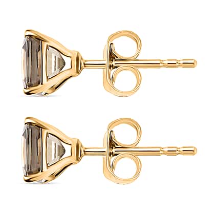 If you are looking for earrings that feel fresh and different, these turkizite solitaire stud earrings make for a great pick. Crafted in 9K yellow gold, it features asscher-cut Turkizite that can add a refined, architectural allure to your look. These stones shift beautifully between champagne, rose, and soft green tones as the light moves This lends an otherworldly, magical feel to the design. These turkizite earrings come with a butterfly push-back closure which makes it easy to put on and take off.