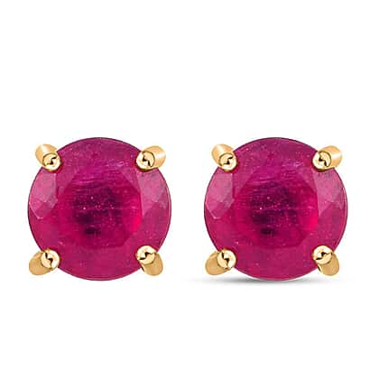 9K Yellow Gold Cabo Delgado Ruby Stud Earrings (With Push Back) 2.614 Ct.