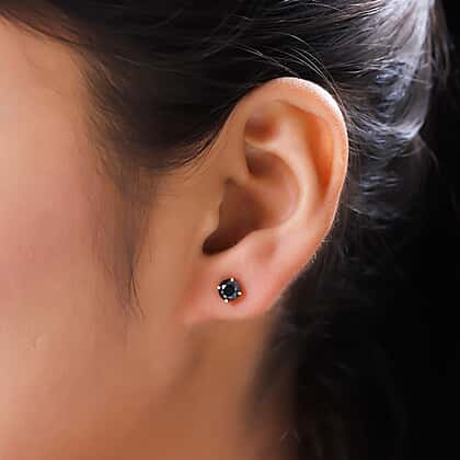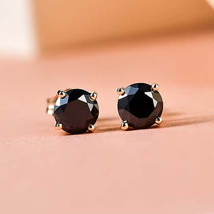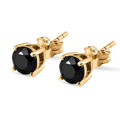 9K Yellow Gold Black Diamond (I3) Solitaire Stud Push Post Earrings 1.00 Ct.