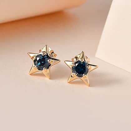 9K Yellow Gold Blue Diamond Stud Earring 0.50 ct