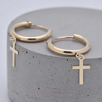 Cross Hoop Earrings in 9K Yellow Gold with Clasp Lock