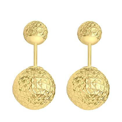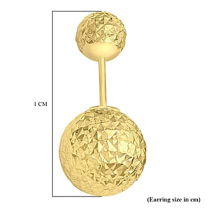 9K Yellow Gold Diamond Cut 6mm x 10mm Reversible Ball Stud Earrings