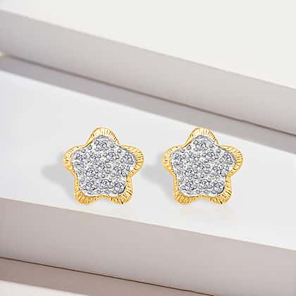 9K Yellow Gold Diamond Floral Stud Earrings 0.15 Ct