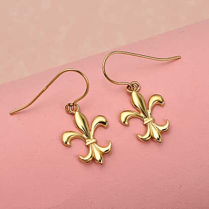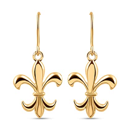 9K Yellow Gold Fleur De Lis Earrings (with Hook)