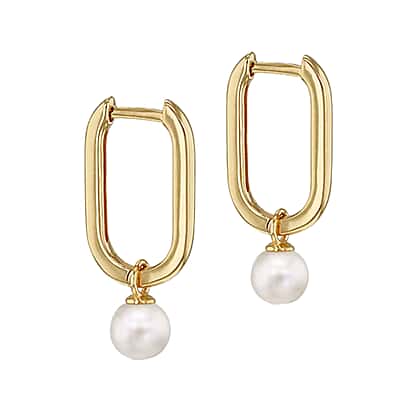 9K Yellow Gold Fresh Water Pearl Hoop Pearl Earrings (With Clasp)