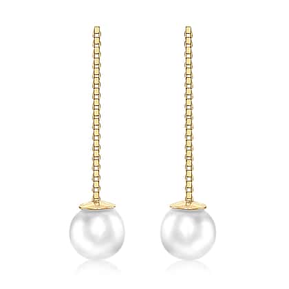 9K Yellow Gold Freshwater Pearl 4.5mm x 45mm Pull Through Chain Earrings