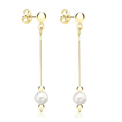 9K Yellow Gold Freshwater Pearl 5mm x 36mm Chain Drop Earrings