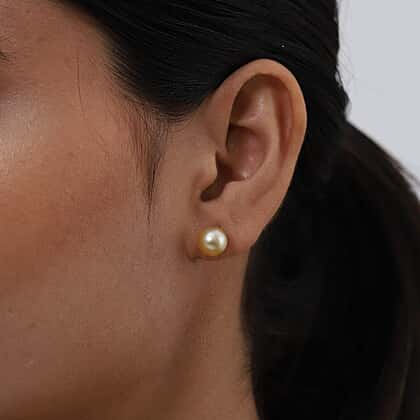 9K Yellow Gold Golden South Sea Pearl Ball Stud Earrings