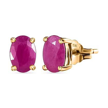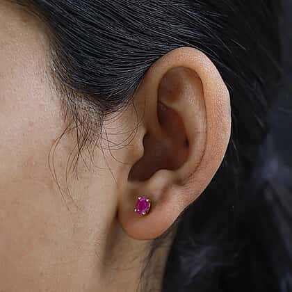 - These studs feature exquisite oval-shaped rubies for a touch of glamour.