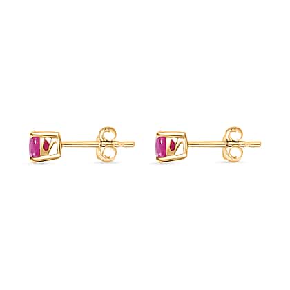 9K Yellow Gold Montepuez Ruby Solitaire Earrings 1.14 Ct.