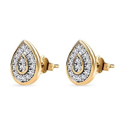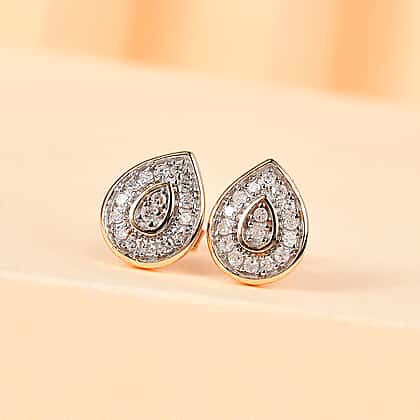 9K Yellow Gold Natural White Diamond Earrings 0.20 Ct - Pear