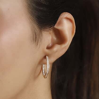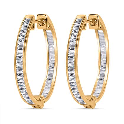 9K Yellow Gold Natural White Diamond Full Eternity Inside Out Earrings With Clasp 1.00 Ct.