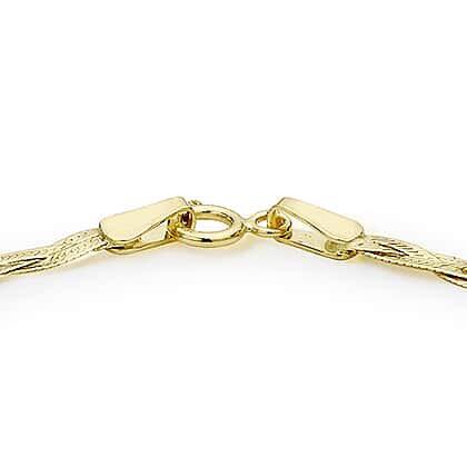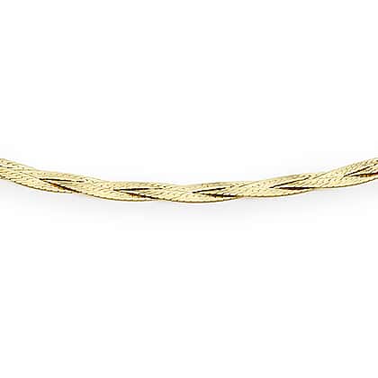 Herringbone design is based on ancient Egyptian styles and features flattened links that move like a snake. The main characteristic of a herringbone pattern is that the links are arranged side by side rather than one over the other. This bracelet is made up of multiple herringbone chains that have been plaited together to form one bracelet. This bracelet is made of 9K yellow gold and weighs 1.4 grammes, providing excellent value for money. This bracelet is fastened with a spring ring clasp.