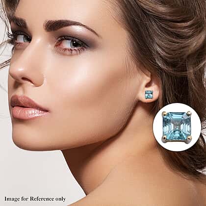 9K Yellow Gold Ratanakiri Blue Zircon Stud Earrings (with Push Back) 4.70 Ct.