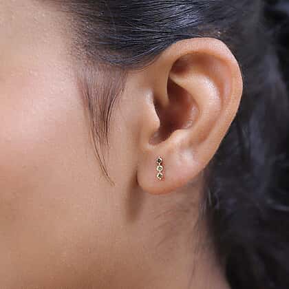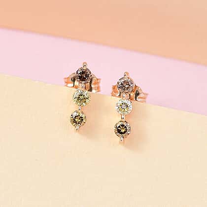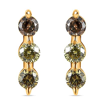 0.25 Ct Champagne, Natural Yellow, Natural Olive Diamond Trilogy Stud Earrings in 9K Yellow Gold