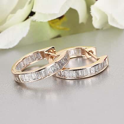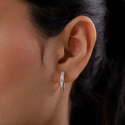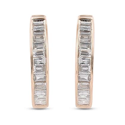 - 1 Carat diamonds cut in a baguette shape are aligned on the length of the earrings in a classic channel setting