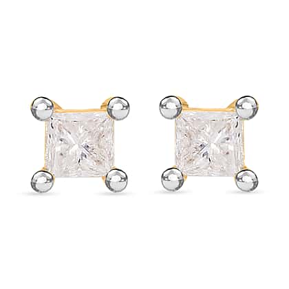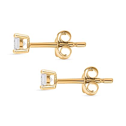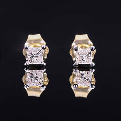0.25 Ct Diamond Princess Cut Solitaire Stud Earrings in 9K Yellow Gold SGL Certified I3 GH