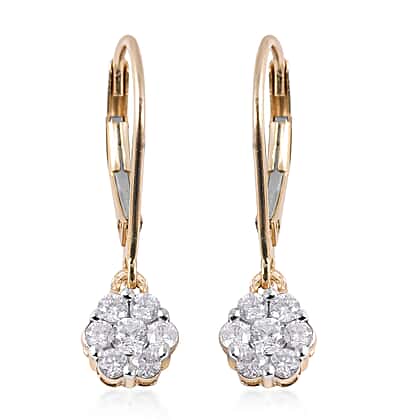 Diamond (I3-GH) Pressure Set Floral Lever Back Earrings in 9K Yellow Gold, SGL Certified