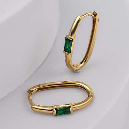 9K Yellow Gold Simulated Green Topaz Hoop Earrings