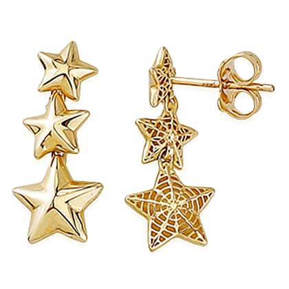 9K Yellow Gold Cascading Stars Earring with Push Back