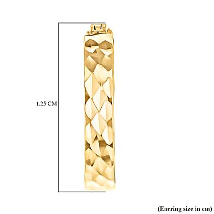9K Yellow Gold Tube Diamond Cut Creole Hoop Earrings 1.1 grams